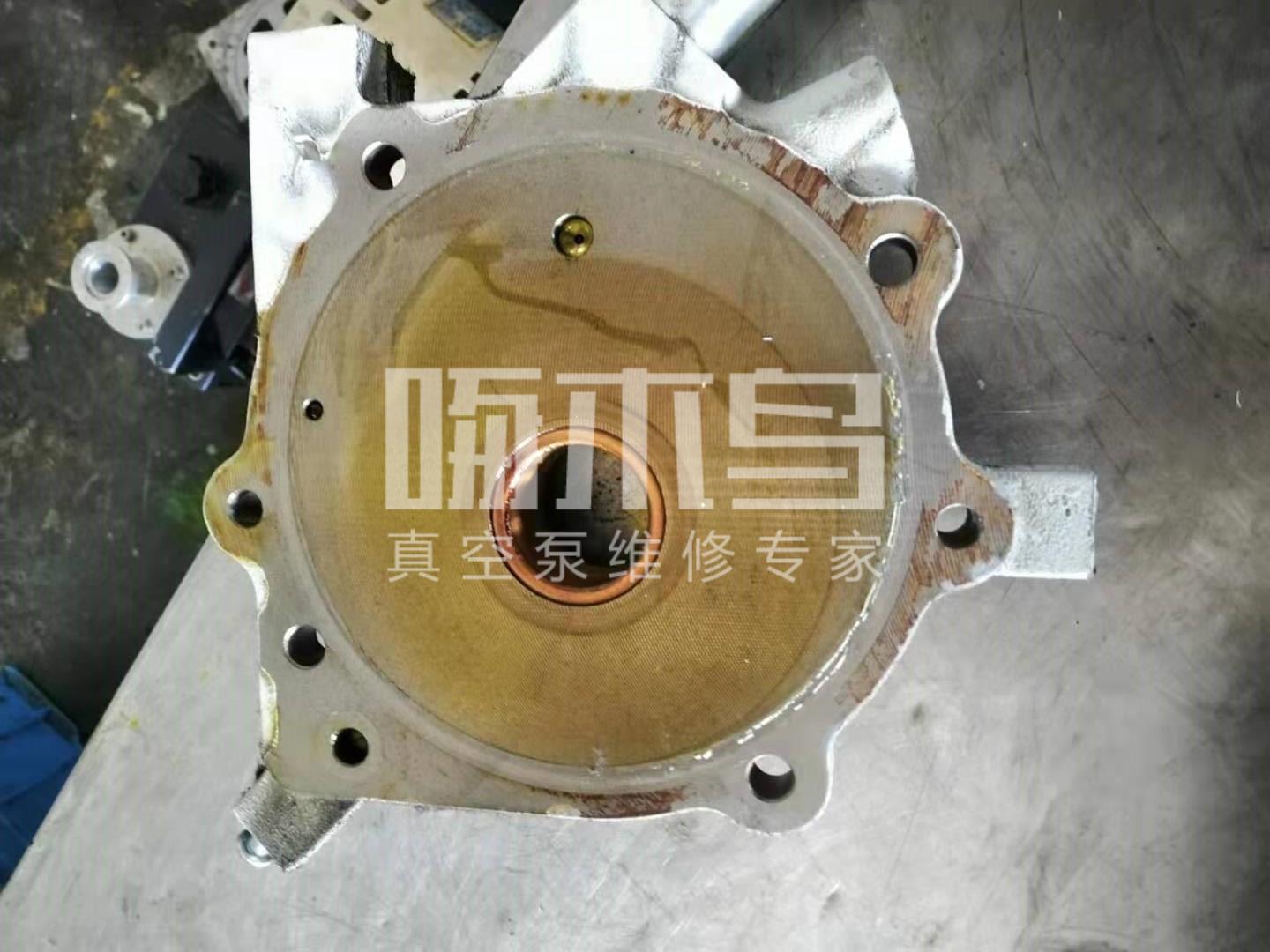 该泵维修前故障原因:抽真空不足,漏油。经过拆检发现泵内密封件损坏,腔体、转子、腔板磨损,维修后真空度达到使用标准。