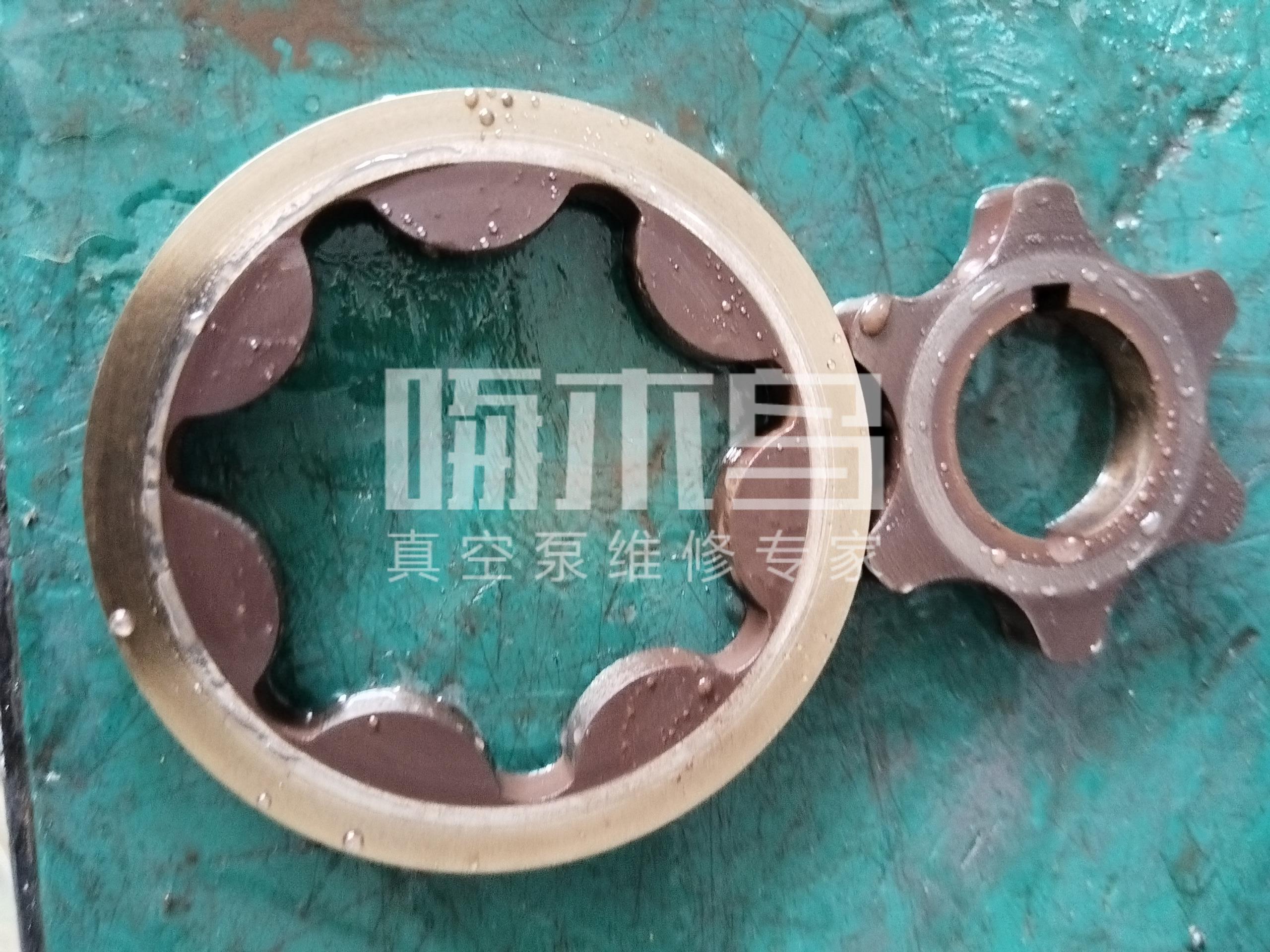 该泵维修前故障原因:抽真空不足。经过拆检发现泵内密封件损坏,腔体、腔板、轴等多个配件磨损,维修后真空度达到使用标准。