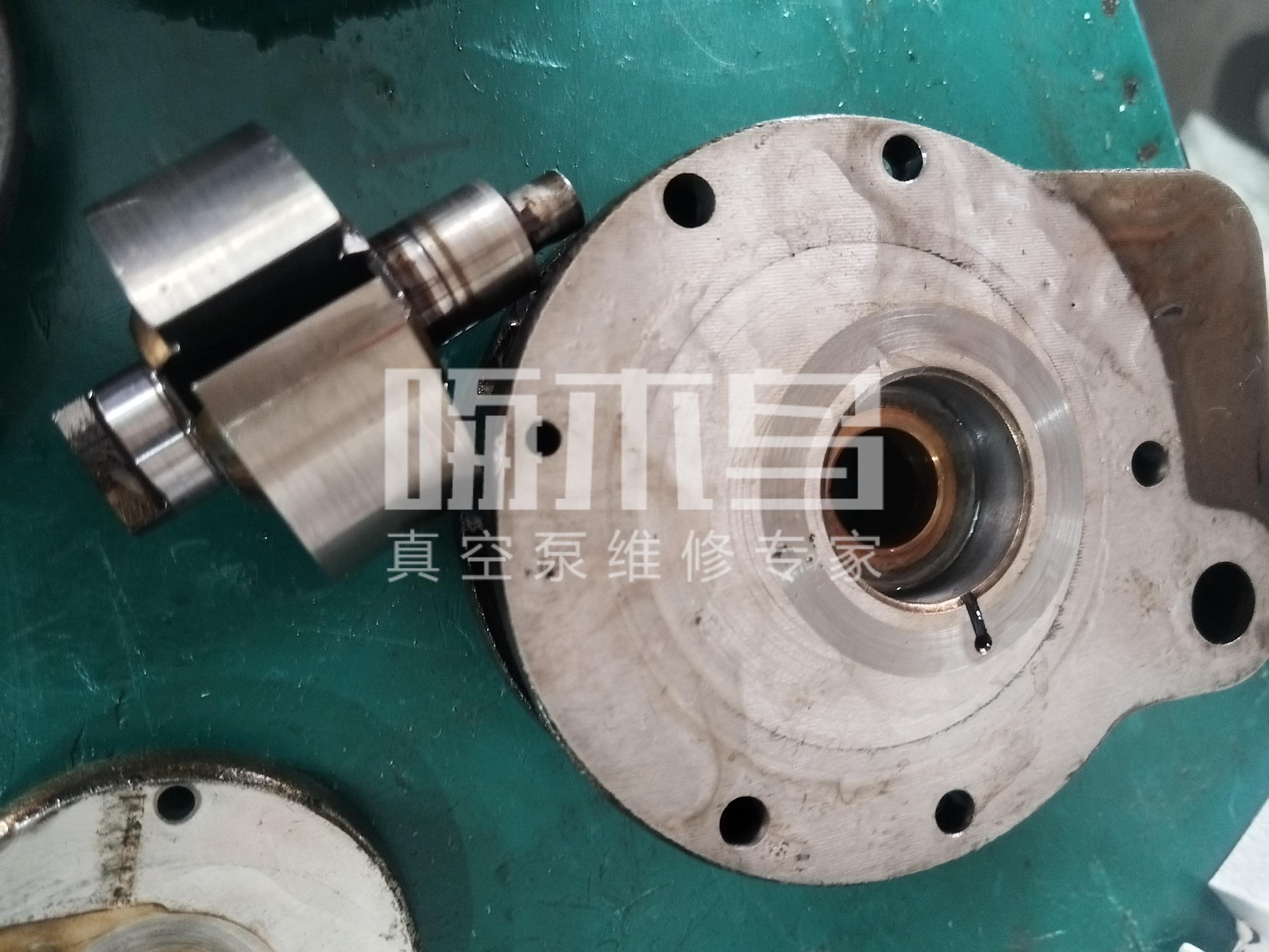 该泵维修前故障原因: 抽真空不足,经过拆检发现泵内密封件损坏,腔体、腔板、轴均已磨损,维修后真空度达到使用标准。